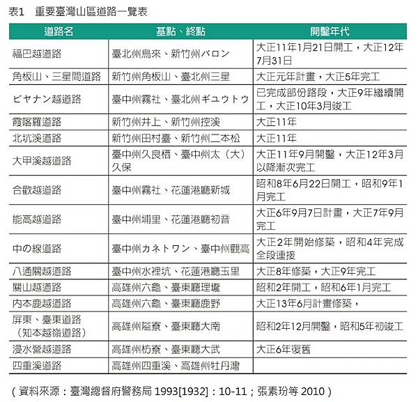 若從歷史地理學的角度來看,「隘勇線」、「理蕃道路」與「集團移住」三項政策是實際是讓原住民生活空間被國家所納管的過程,迫使其土地「行政區化」,大概有三種類型(鄭安睎 2012:166-167):