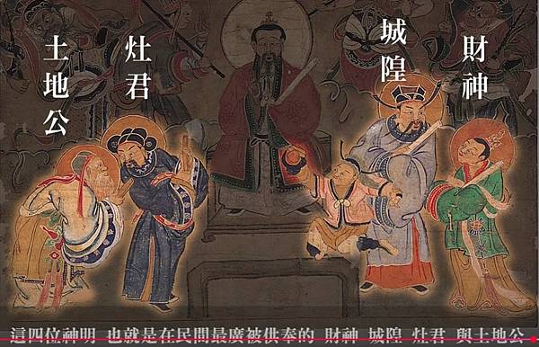 上圖有誤? 左而右--- 地方諸神:左為灶君司命、城隍,右為土地、財神