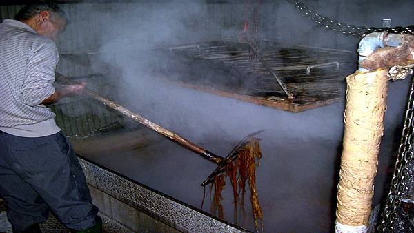 這張照片約拍攝於2002年,呈現廣興紙寮手抄紙製程中的重要工具:煮皮鍋;工具不僅決定手抄紙技藝操作的方式,也是廣興紙寮重要的有形文化資產;由於職人匠師們在921震前已有扎實訓練,加上對手工紙有高度文化保存意識,讓他們願意為守護文化資產而堅持走下去,度過921地震的產業衝擊危機。