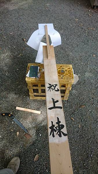 上棟式の幣串(幣束)の字、川嶋:八段 ⇒流石です! | 大阪の注文住宅、木の家の工務店コアー建築工房