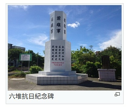 台灣光復後為了紀念六堆軍抗日、保社稷而犧牲的精神,在民國84年(1995年)長興村民集資在火燒庄(長興村)天后宮大廟後方,也就是昔日戰場位置設立了紀念碑,碑旁邊為烈士祠與六角涼亭,由這幾個建築物組成的空間即是六堆全民抗日紀念公園。