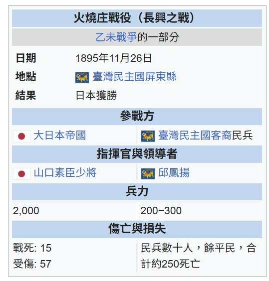 主條目:乙未戰爭 § 六堆火燒庄戰役