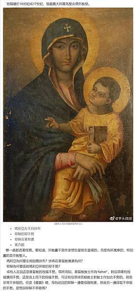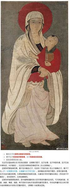 一個主要理由是:在唐寅之前,這種形式的「聖母像」已經廣泛流行於歐洲各國,「聖母」的衣服、頭巾、懷抱的孩童,孩童做出的手勢以及抱著的書籍或捲軸都大同小異,我們可以看下面幾幅圖: