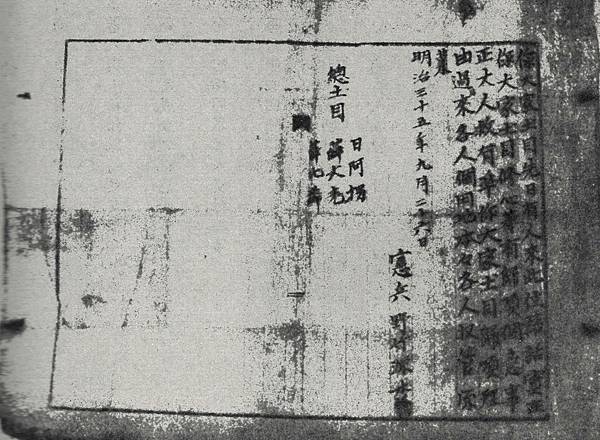 第一次歸順式,泰雅族鹿場社領袖太祿下山參加。