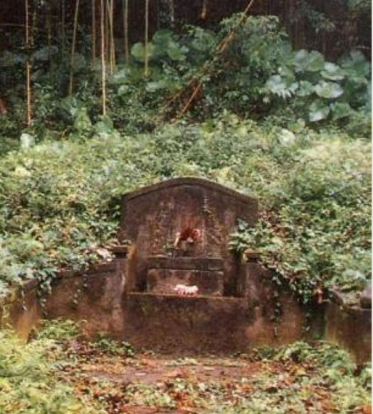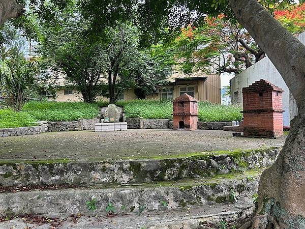 我走進靜悄悄、空無一人的校園,穿過有著一排排教室的長廊,左顧右盼,想尋找一個墓園。最後繞過操場,終於在靠近馬路邊的幾棵大樹下,看到一座墳塚和斑駁的墓碑,旁邊還有磚製香爐。