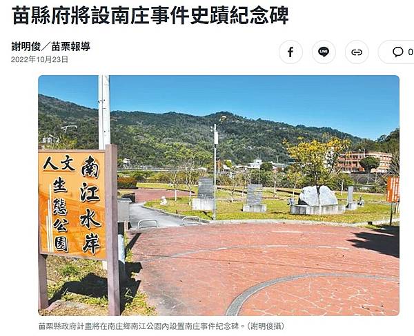 "原民抗日殉難 「南庄事件史蹟」成全台第4處史蹟 - 客新聞 HakkaNews" https://hakkanews.tw/2022/08/18/30024/