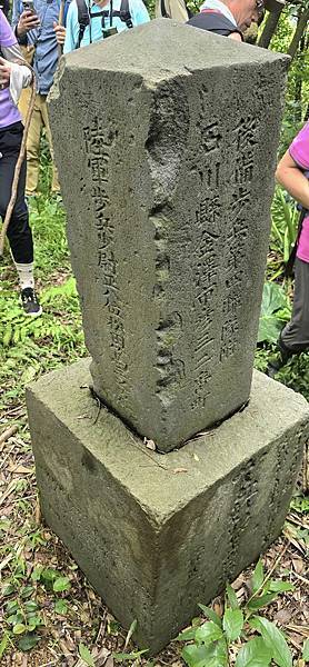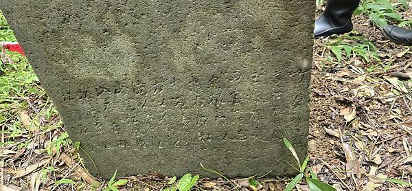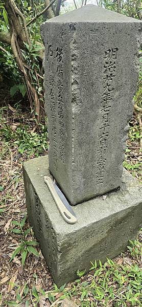 該石碑下方石臺座卻為西國33石觀音靈場第18番石觀音的石臺座,碑上四個面分別銘刻[陸軍步兵少尉正八位松田篤三之墓] 、〔明治29年1月1日於三貂大岒戰死〕、 〔明治廿九年七月十六日有志者建之〕 〔後備步兵第四聯隊附 石川縣金澤市彥三二番町〕等字樣~