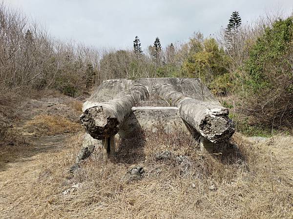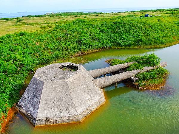 1944-1945年,澎湖歷經美國轟炸機的多次轟炸中,外垵餌砲和豬母水餌砲幸免毀於砲火中而保留至今。外垵假砲 https://bit.ly/4l3JY5b