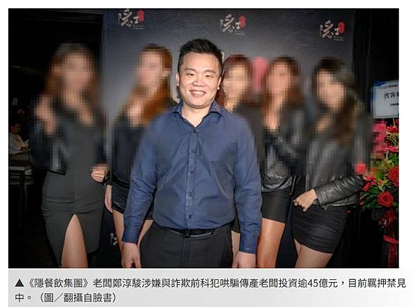 ▲▼ 《隱餐飲集團》老闆鄭淳駿涉嫌與詐欺前科犯哄騙傳產老闆投資逾45億元,目前羈押禁見中。(圖/翻攝自臉書)