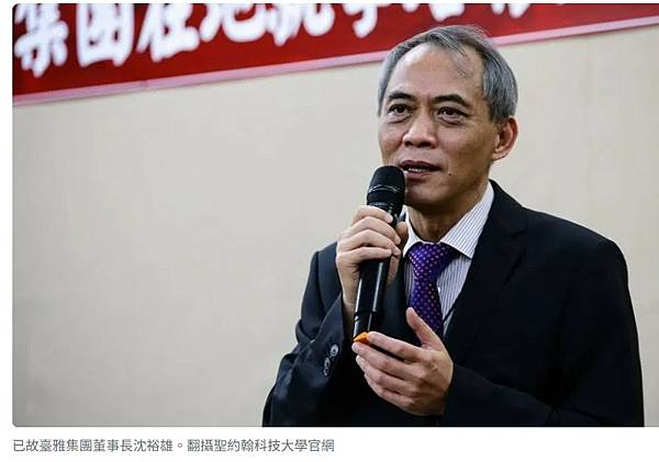 已故臺雅集團董事長沈裕雄。翻攝聖約翰科技大學官網