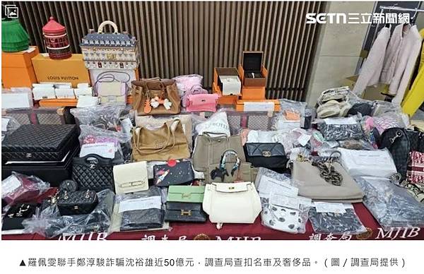 羅佩雯聯手鄭淳駿詐騙沈裕雄近50億元,調查局查扣名車及奢侈品。(圖/調查局提供)