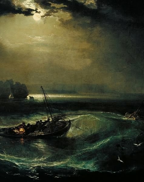 這幅畫裡,透納描繪了一艘處在月色與危險中的船隻。