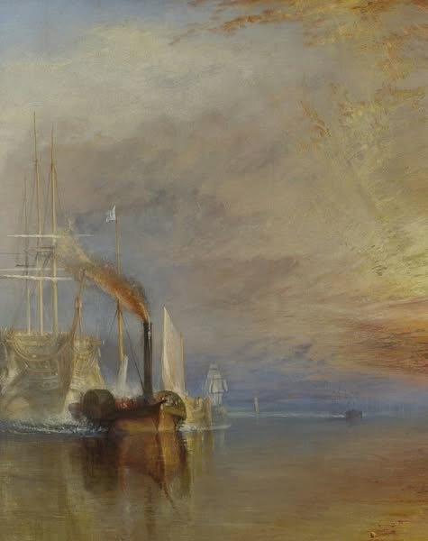 1838年,透納完成他一生最有名的畫作:《被拖去解體的無畏號戰艦》