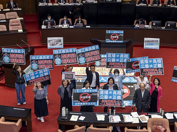 全世界除共產主義國家外,尚無實施法庭直播國家。這是黃國昌一人綁架立院的修法;國民黨團也在今中午發出動員令,指出該法案攸關藍白合作、與大罷免息息相關,請國民黨立委共體時艱進場待命表決,這不是赤裸裸的政治交換?這樣的修法有何正當性?