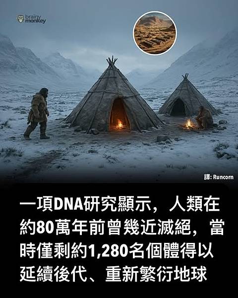 🔍透過一種叫做「FitCoal」的統計模型,研究人員分析了超過3,000名現代人的基因組,推算出我們的祖先在大約 80萬年前,人口數量急遽下降,只剩下 約1,280位具備繁殖能力的個體。