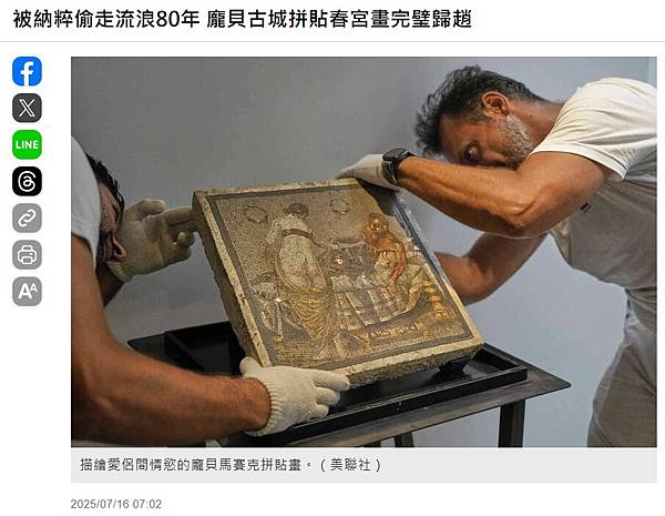 被納粹偷走流浪80年 龐貝古城拼貼春宮畫完璧歸趙 - 國際 - 自由時報電子報