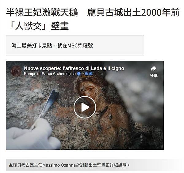 相關報導:半裸王妃激戰天鵝龐貝古城出土2000年前「人獸交」壁畫https://tinyurl.com/ynfkhmgv
