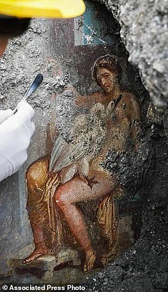 (神秘的地球uux.cn報道)《每日郵報》發布消息稱,專家在龐貝古城遺址一處牆體發現一幅以古希臘神話「麗達與天鵝」為主題的情色壁畫。