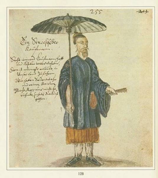 唐人撐傘圖, 收於《東西印度驚奇旅行記》重刊本 。