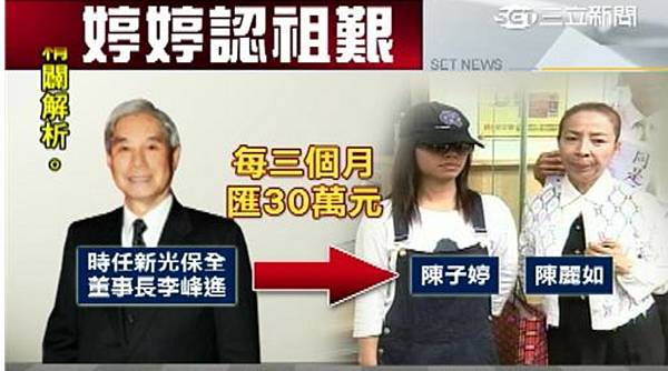 2006年10月,時任新光保全董事長李峰遙出面代表吳家拿50萬元現金給陳麗如,後來每月付30萬元生活費。知情人士指出,當時吳家是以付生活費、孩子學雜費的名義,要求陳子婷不要進吳家,以免吳火獅的遺孀吳梁桂蘭不開心,吳家也曾向陳麗如表示,可以安排陳子婷出國求學或協助就業,2011年吳家未再付款。