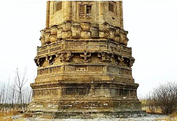 中間塔身,四正面雕仿木隱作隔扇假門,其它四面則雕有仿木欞假窗。