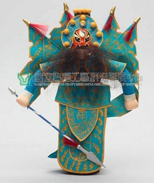 北京銅茶盤子戲,又稱「鬃人、銅盤人、盤中好戲」,是老北京的傳統玩具,因為是在銅盤中擺置鬃人戲曲人物,因此被稱為「銅茶盤子戲,為北京市非物質文化遺產。 「鬃人」,是以秫秸當架,膠泥做頭,在頭部勾畫臉譜,紙漿或布飾身胎,外繃彩紙描繪服飾,於底部裝黏一圈豬鬃,就形塑成一尊尊戲劇人物,高度通常為數公分到數十公分。只要規律敲擊上面有鬃人的銅盤子,那些人偶就會緩慢自旋,再搭配藝人唱歌,場面就如一場生動的舞台。 本件鬃人平劇人物-姜維,為三國時期蜀漢著名軍事家,深受諸葛亮器重。孔明死後,姜維總領蜀漢軍權,並先後11次伐魏。為人清廉樸素,節儉簡約,為一時之模範。而蜀漢成都遭遇魏將鄧艾陰取險路偷襲,後主劉禪投降。姜維不得已詐降魏,陰謀策劃鍾會反魏,盡殺魏將,設法復國,後因事機敗露,自刎報效蜀漢。 姜維平劇臉譜「紅臉」代表對蜀漢之忠心,額上太極圖,說明他通曉陰陽八卦。(詮釋委員:簡榮聰) 平劇人物-姜維|國家文化記憶庫 2.0 https://bit.ly/45E1oiC