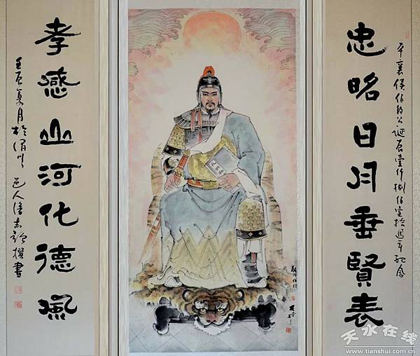 姜維,字伯約,三國時冀城人(今甘谷縣人),是甘肅省早期歷史上著名人物。據《三國志·蜀書》、《劍閣縣續志》等有關史料記載:維少孤,隨母居,自幼博覽群書,酷愛孫武之學,有膽識,才智超人。原為魏中郎將,建興七年(230年)冬,蜀相諸葛亮取天水關時,被諸葛亮收服,特別受諸葛亮器重。建興12年(235年),諸葛亮病故,姜維為右監軍輔漢將軍,封平襄侯,延熙19年春(256年)晉升漢大將軍。姜維繼承諸葛亮遺志,竭忠盡力,固守劍閣,欲圖恢復,統一中原。不幸,魏大舉伐蜀,後主劉禪投降,詔姜維棄戈。姜維偽降魏將鐘會,並挑起鄧艾、鐘會矛盾,欲圖伺機舉事,不幸事洩,死於亂軍之中,被分屍剖膽,見其膽大如雞卵,眾人皆驚。