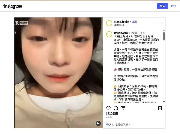 視頻下的評論區有人感嘆:「社保保住了命,工資保不住飯碗。」一位自稱「湯圓mom」的網友計算後指出,這樣的實習收入意味著「賠錢上班」,等於倒貼時間和金錢去換一個不確定的未來。