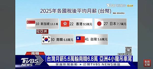 〈財經主筆室〉台灣平均薪資居亞洲四小龍末位 | Taiwan News | Aug. 18, 2025 12:17 https://bit.ly/41eGMw8