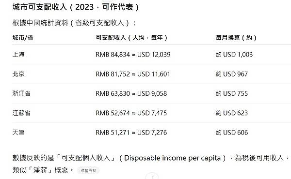 根據最新資料,中國 2024–2025 年度前五大城市(GDP per capita)為:
