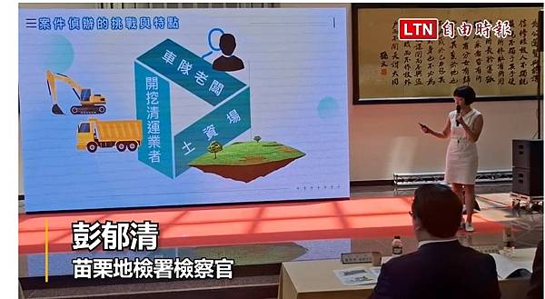 〔記者張勳騰/苗栗報導〕苗栗地檢署去年接獲檢舉,發現苗栗縣後龍鎮龍港段一處山谷遭非法傾倒大量營建廢棄物,苗檢結合環境部環境管理署及苗栗警、調單位組成專案小組追查,今(25)日共同舉辦「翠谷悲鳴 苗檢出擊」記者會,宣布破獲苗栗史上最大規模的集團性環保犯罪;苗栗檢方以涉犯廢棄物清理法、刑法偽造文書罪等多項罪名,共起訴 49 人,其中包括台北市營建剩餘土石方資源處理公會王姓理事長等人,不法利益所得總額推估近3 億元,已由苗檢查扣公告現值逾 1.2億元的不動產及現金2400萬元,另查扣犯罪工具39輛曳引車,創下全國扣押曳引車數量紀錄。