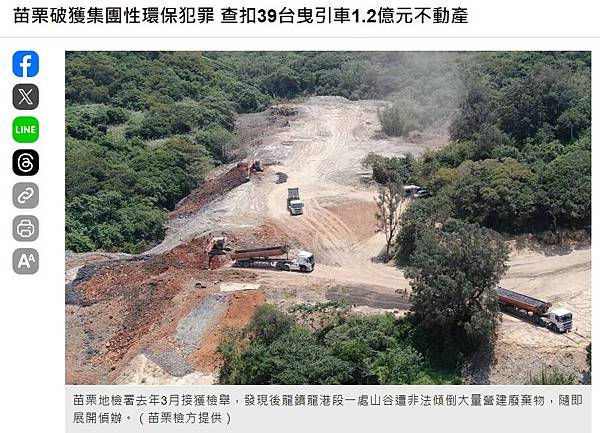 苗栗破獲集團性環保犯罪 查扣39台曳引車1.2億元不動產 - 社會 - 自由時報電子報 https://bit.ly/4fWiEV9