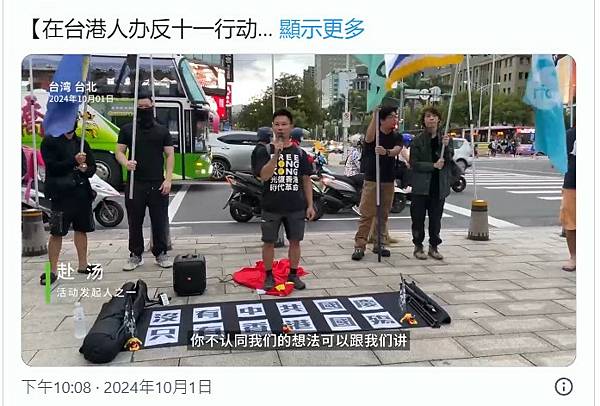 參與活動的港人團體「香港邊城青年」祕書長馮詔天表示,在台灣的港人選在「十一」舉辦「國殤」活動,是想爲同樣受到中國迫害的人發聲,他認為,破壞者是受到中國洗腦教育影響才有這種行為。