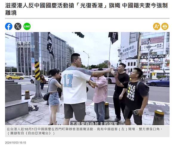 滋擾港人反中國國慶活動搶「光復香港」旗幟 中國籍夫妻今強制離境 - 政治 - 自由時報電子報 https://bit.ly/4gItrCe