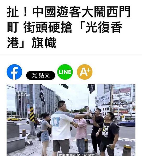 中國遊客街頭硬搶「光復香港」旗幟 林延鳳:挑釁台灣民主跟法治 - 政治 - 自由時報電子報 https://bit.ly/47ZgXSY