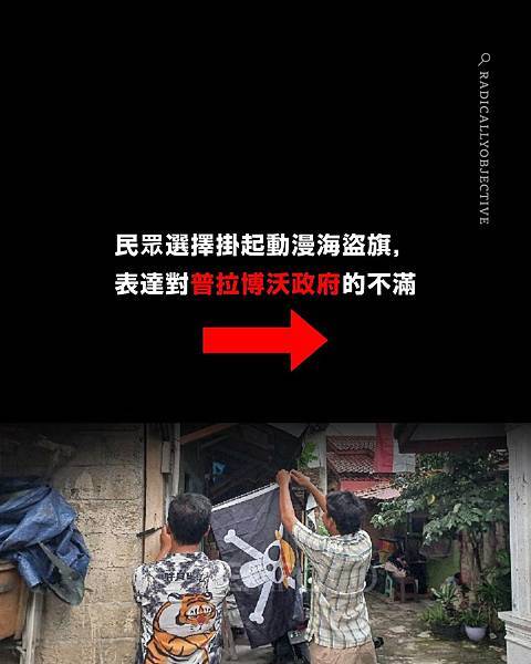 除了國內年輕人的相互串聯,社群也讓不同國家群眾相知相惜,相互聲援。比如日本動畫《航海王》的骷髏旗幟,在印尼示威被採用後,很快也為尼泊爾與菲律賓的年輕人效仿。