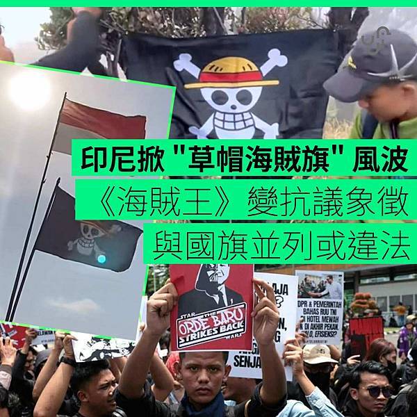 根據多家媒體報導,印尼、馬來西亞等地的示威者在街頭高舉「草帽海賊旗」,甚至以貼紙、塗鴉或服飾的形式表達立場,並透過TikTok與其他社群平台擴散影像。這種從漫畫世界借用的符號,在現實政治場景中獲得了新的生命。