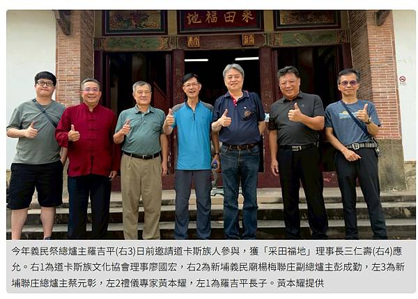 三仁壽說,他以前小時候就曾和家人到新埔義民廟祭拜,這次獲羅吉平等人邀請,加上族人也同意,他就開放大家志願報名參加,但是也不好去太多人,因此今年義民祭當天,包括他在內,會有6名族人到新埔褒忠義民廟參與今年的義民祭。