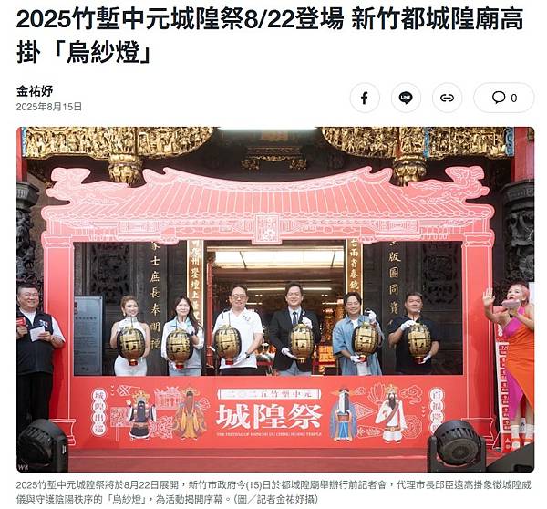 焦點新聞-當傳統信仰遇上創新文化!邱臣遠代理市長宣布2025竹塹中元城隍祭8/22登場-新竹市政府 https://bit.ly/3I5kvug