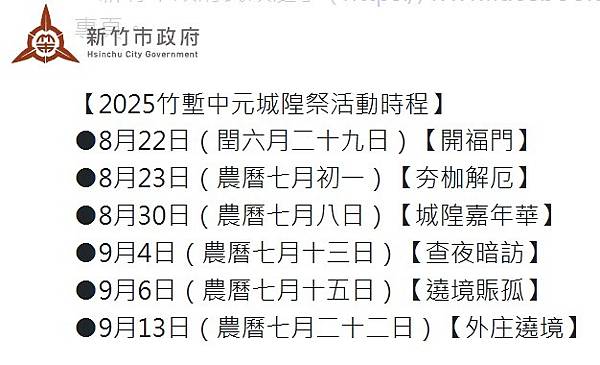 🔶 2025 竹塹中元城隍祭 活動時程 🔶
