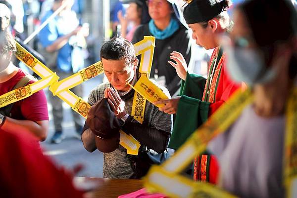 ➡️法會流程:請至城隍廟廣場排隊>領疏文>領紙枷>道長讀疏文夯枷儀式>范謝將軍與陰陽司公起駕、夯枷解厄民眾出發>道長讀疏文脫枷儀式