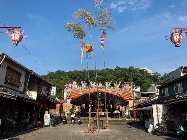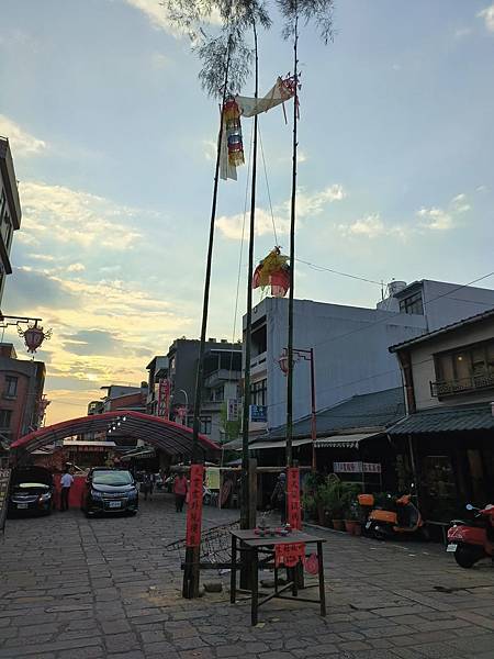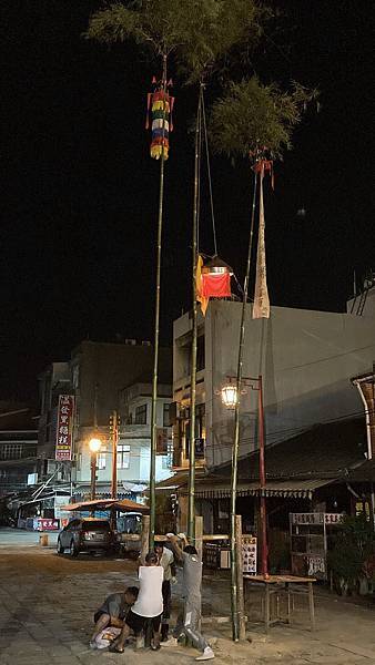 除了大士爺,最引人注意的就是三根長長的竹子豎立在慈天宮的外埕上!