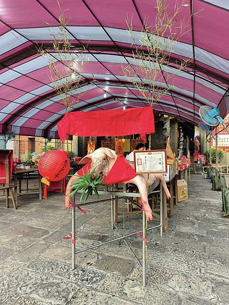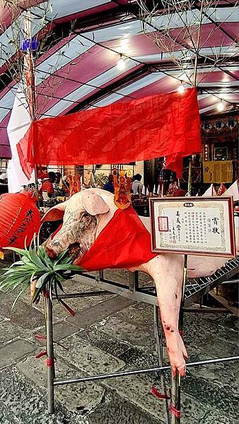 也看得出爐主對豬公的重視,驕傲的分享今年找到了四頭神豬,加上他貢獻的總共有五頭,場面算是交代得過去了,第一天他就跟我們分享了,他已經想好怎麼分食這些豬肉,要給那些來幫忙的志工,北埔各社區協會都有拿到!