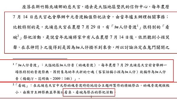 北埔與芎林地區的細人普由來說法相似,因為擔心幼魂搶不過大鬼,因此在鬼門關前一天,會專門辦理一場給 #小孤魂的普度。