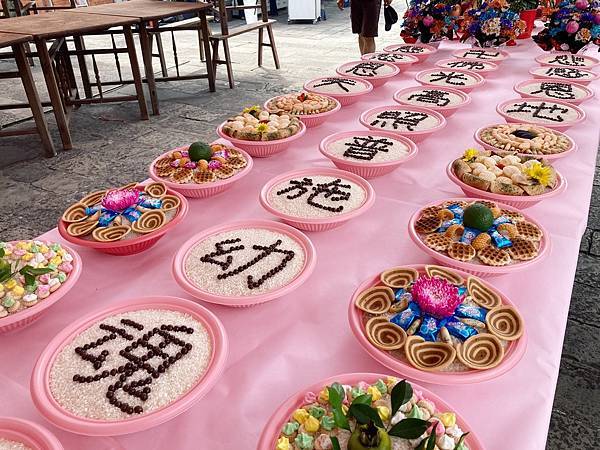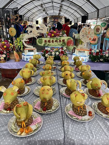聽叔叔阿姨說,師傅使用的食材還有冬瓜、鹹菜、蘿蔔等食材,小時候曾看過用豬肚雕刻的大象、麵粉做成的各種人物、動物;也有人說,廟埕前會有 #蚊子電影院 播放卡通,北埔人農曆七十四看大戲,農歷七二九看電影。