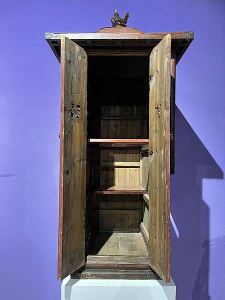 在六悅博物館,守望廬主發現四頂迷你小花轎。其中一頂最小的,轎高128厘米,深65厘米,外寬46厘米,內寬40厘米。