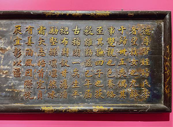 下款,叔父葵陽為姪子女兒製作匾額並拜贈,時在道光七歲次丁亥(1827)姑洗月(三月)谷旦。