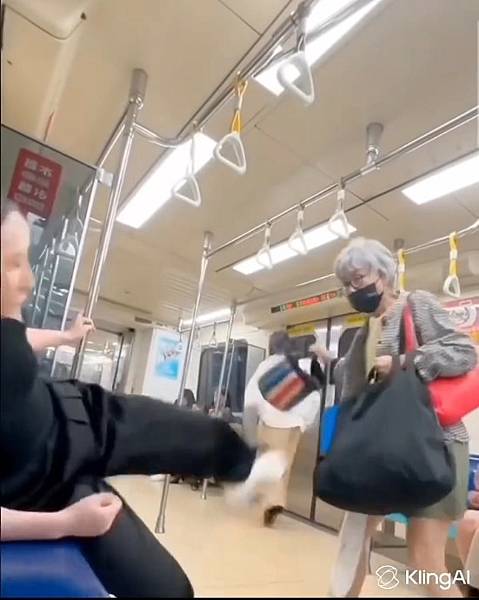 台北捷運近日再次發生「讓座」衝突,一名年長婦人要求讓座不果,就用手提袋攻擊年輕乘客,隨後年輕人用腳將其踹倒在對面的座位。