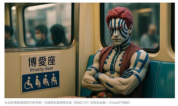 2023年,一名男子在搭乘捷運時不滿博愛座上的乘客沒有讓座,拿紙袋揮擊對方的臉部,更直接用屁股坐在對方腿上。