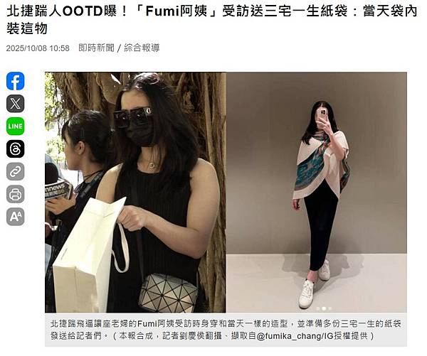 "北捷踹人OOTD曝!「Fumi阿姨」受訪送三宅一生紙袋:當天袋內裝這物 - 生活 - 自由時報電子報" https://news.ltn.com.tw/news/life/breakingnews/5203927